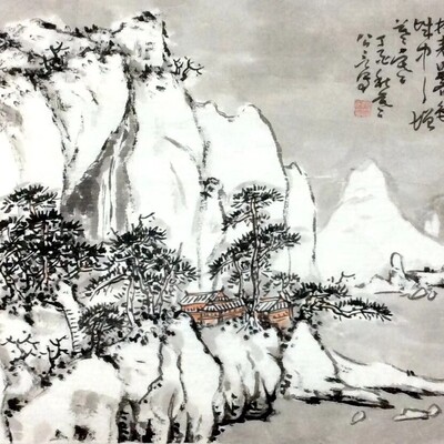 Разберём техники правильного изображения деревьев, гор, камушков, лодочек и китайских домиков в стиле традиционной китайской живописи.