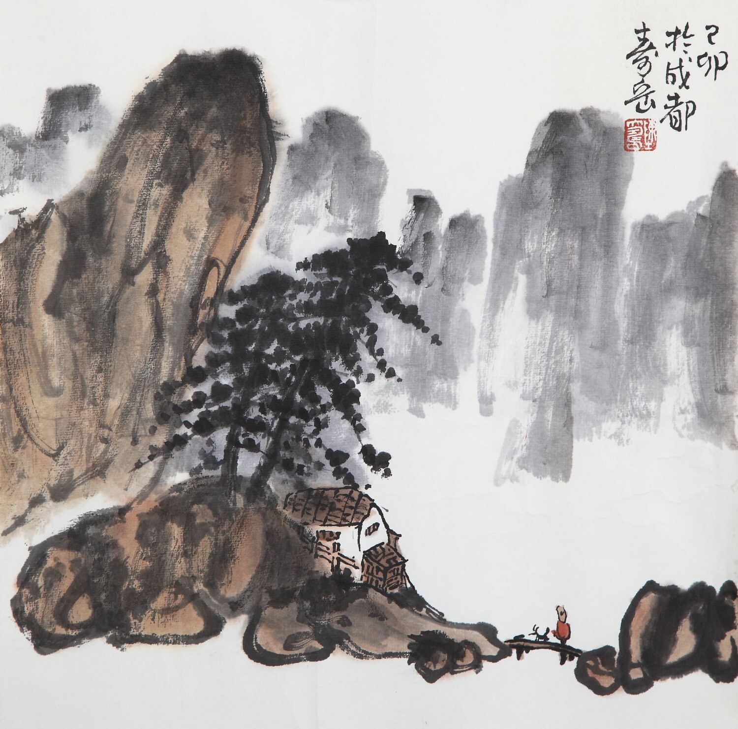 Сочетание охры с китайской тушью и другими красками.